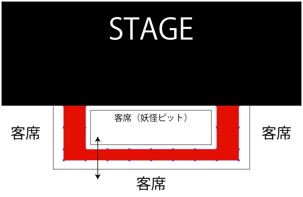 お兄さんバンド同様に花道がドーン!!定員150名くらいの妖怪ピット(サークルモッシュゾーン)なるものが出現。